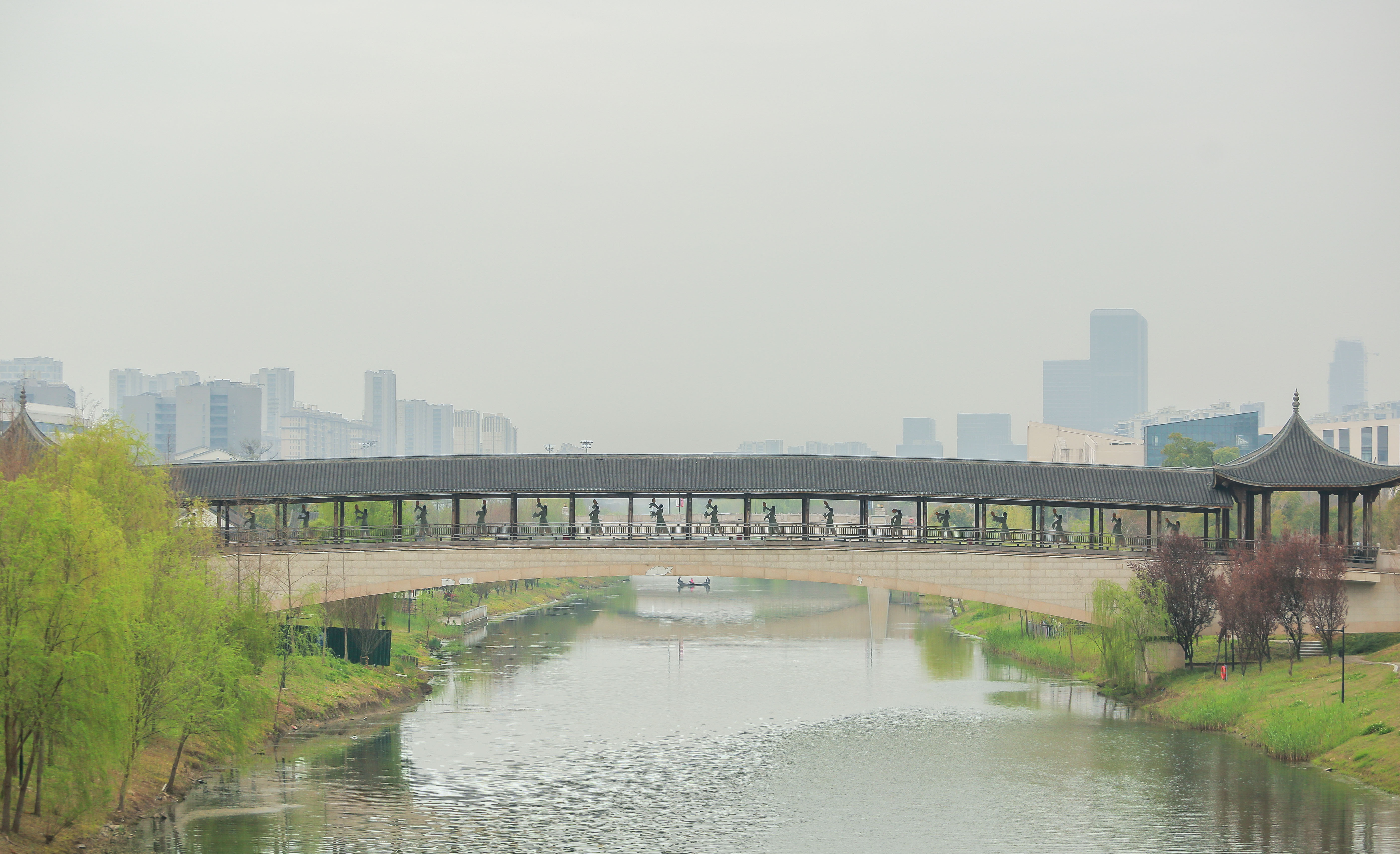 没有固定的舞台,没有隔开的观众席,“廊桥雅集”从一开始就打破了传统演出的边界。塘河码头、廊桥、草坪,被串联成一条完整的观演动线, 将江南文脉,融汇杭州刺绣、茶道、戏曲等优秀传统文化。
