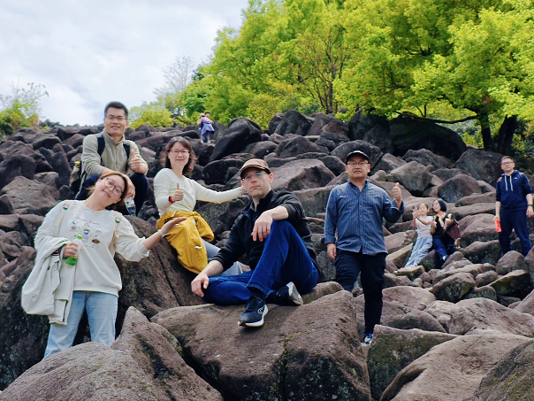 教工们兴奋地说,“站在观景台上俯瞰整片千年梯田,感觉整个人都被春天包围了,太治愈了。”除了绝美的绿油油的梯田,覆卮山还有着众多独特的自然与人文景观,让教工们的春游之旅充满惊喜。位于山顶的万年石浪,是第四纪冰川遗迹,巨石如浪般从山顶倾泻而下,气势磅礴。教工们手脚并用,攀爬在石浪之间,感受着大自然的鬼斧神工。“攀爬石浪虽然有点累,但当你站在石浪顶端,俯瞰山下的梯田和群山,那种成就感简直无法用语言形容。”一位教工气喘吁吁地说,脸上却洋溢着兴奋的笑容。
