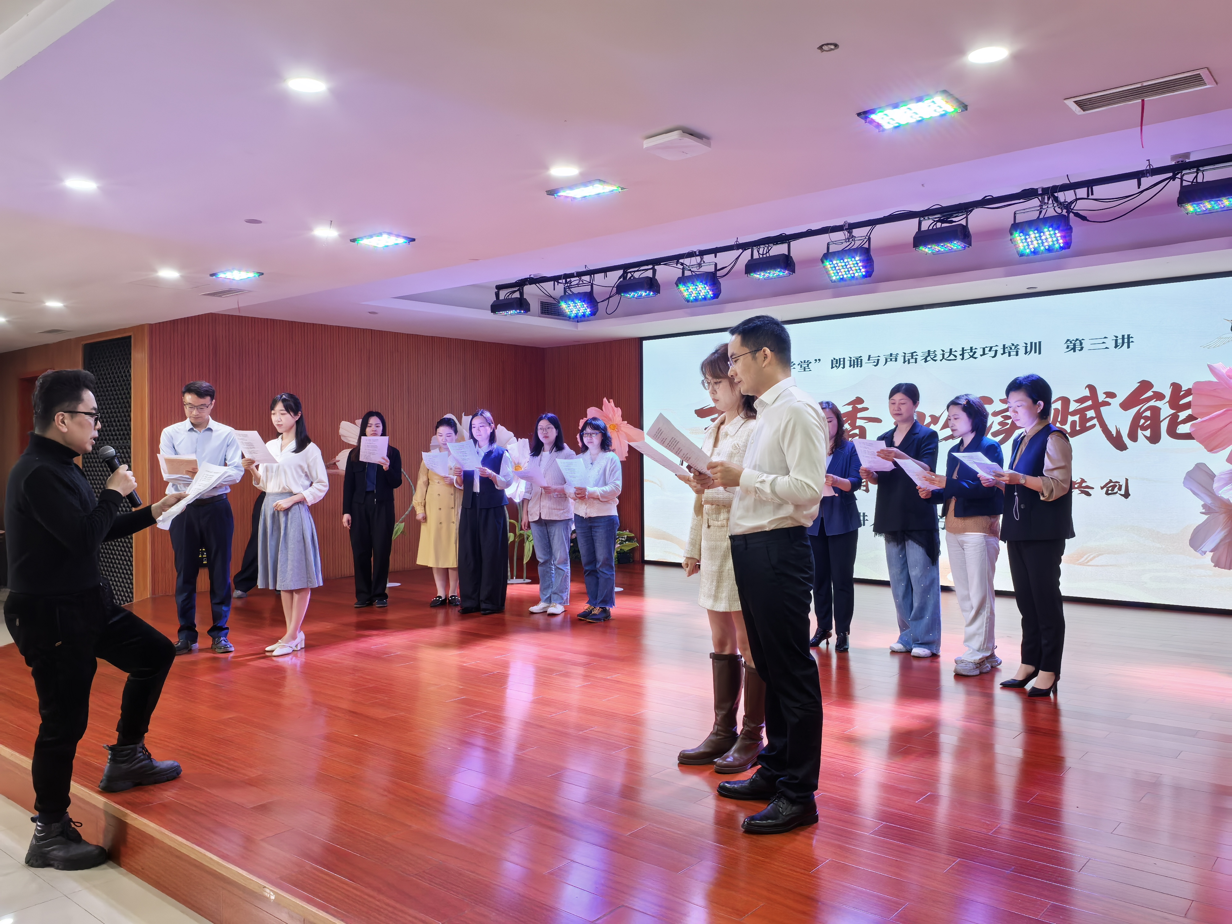4月22日中午,工会博雅学堂为教职工开设的朗诵与声话表达技巧系列课程迎来第三讲暨结课仪式,本次主题为“声润书香 • 以读赋能——校园朗读实践与风采共创”,课程圆满落下帷幕。